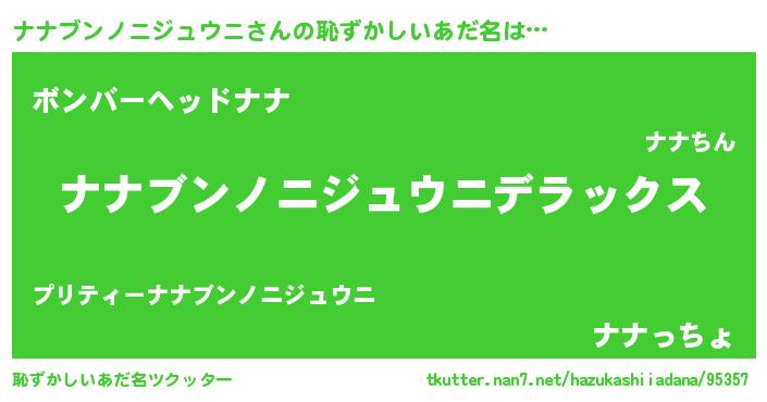 | 男性向けラノベタイトル風あだ名 | 『この素晴らしい世界にナナブンノニジュウニを!』 |