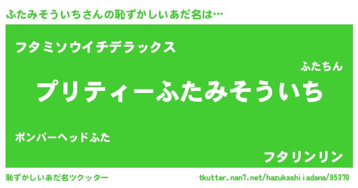 | 意味不明あだ名 | 『住所不定無職ふたみそういち(1歳)』 |