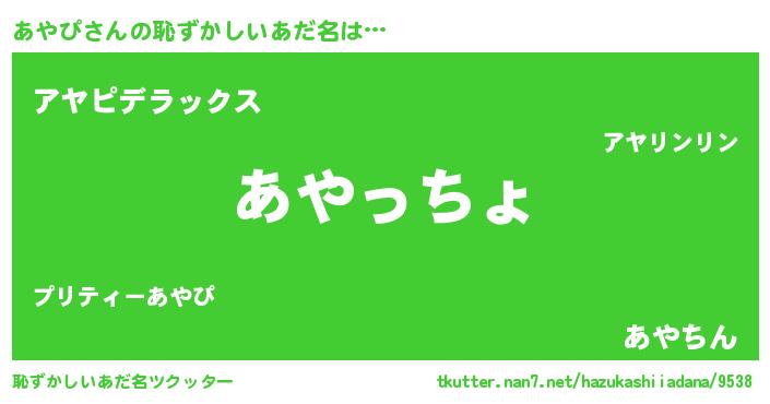 | 意味不明あだ名 | 『あやぴフォーエバー』『自称あやぴ』 |