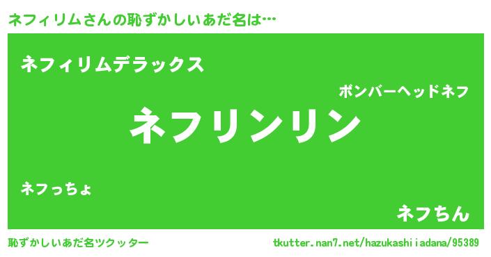 | ヘコむあだ名 | 『ネフ太郎』『ネフィリム(笑)』 |