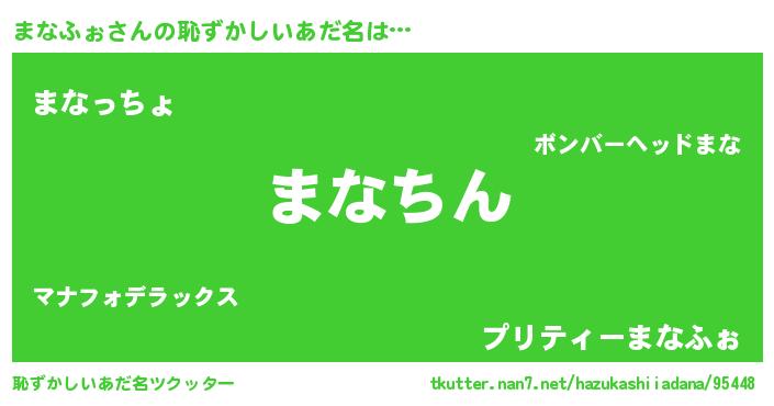 | 男性向けラノベタイトル風あだ名 | 『まなふぉという概念が存在しない退屈な世界 』 |