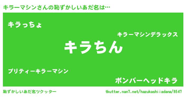 | ヒーロー風カッコイイあだ名 | 『仮面キラダー』『ネオキラーマシン』 |