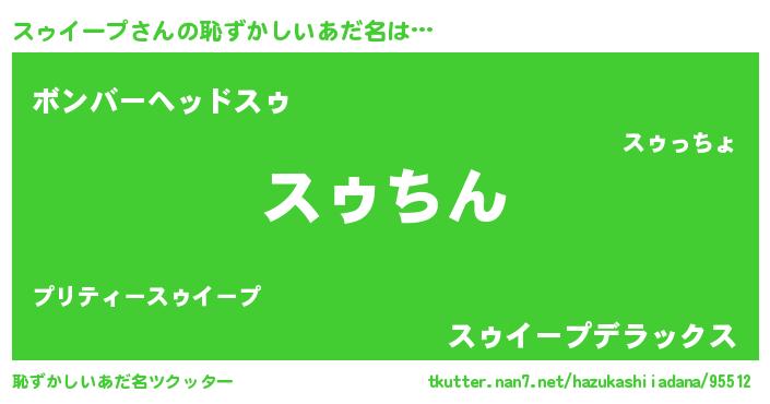 | 意味不明あだ名 | 『永久保存スゥイープ』『自称スゥイープ』 |