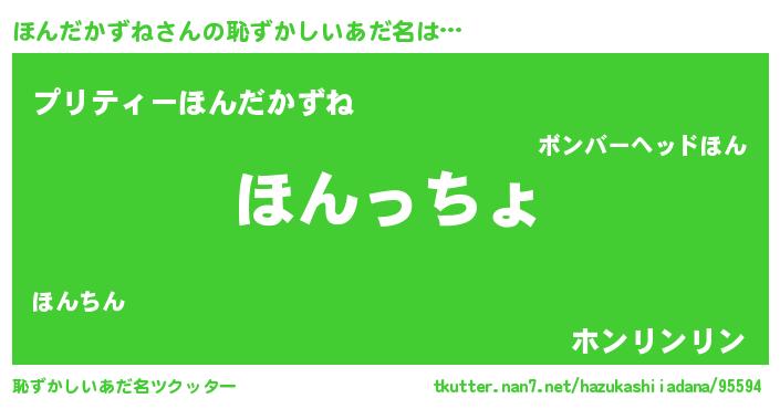 | 男性向けラノベタイトル風あだ名 | 『ほんだかずね~年齢イコール彼女いない歴の魔法使い~』 |