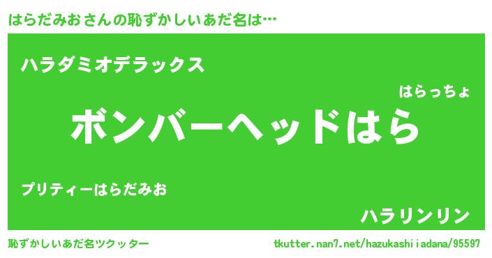 | 意味不明あだ名 | 『住所不定無職はらだみお(81歳)』 |