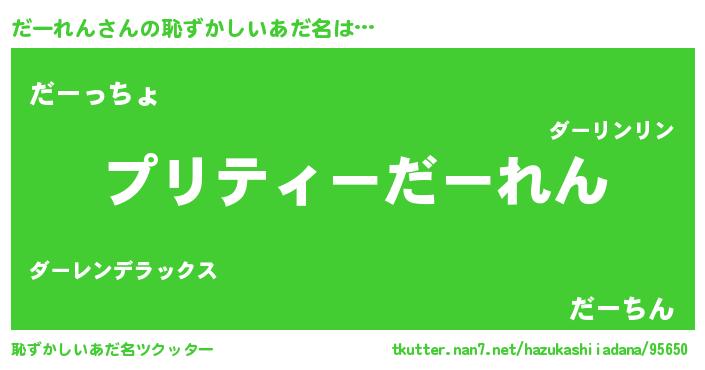 | 意味不明あだ名 | 『住所不定無職だーれん(7歳)』 |