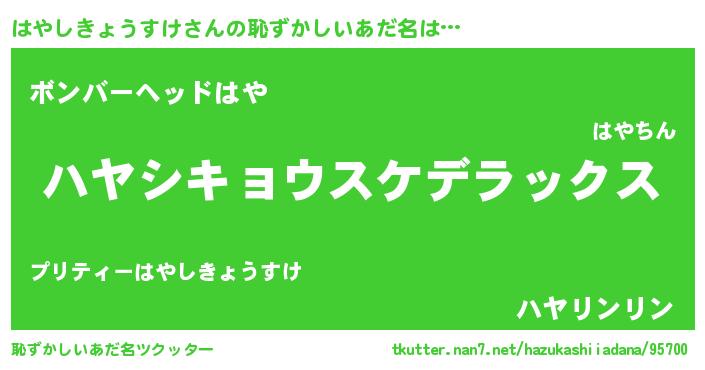 | 意味不明あだ名 | 『自称はやしきょうすけ』 |