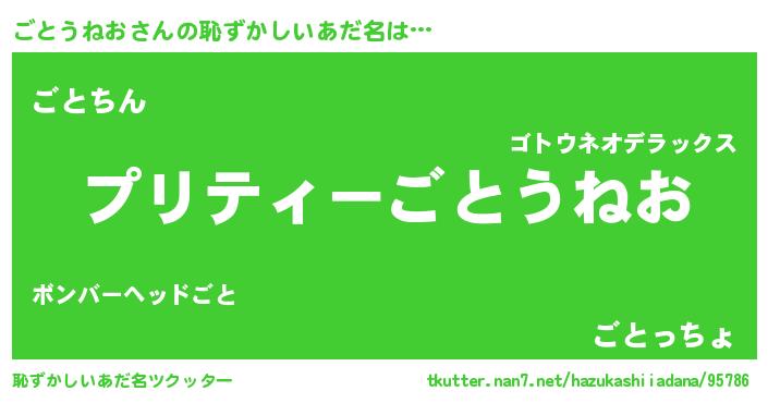 | 意味不明あだ名 | 『ペロリンごとうねお』『自称ごとうねお』 |