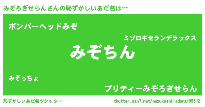 | ヘコむあだ名 | 『みぞろぎせらん(小並感)』『みぞにー』 |