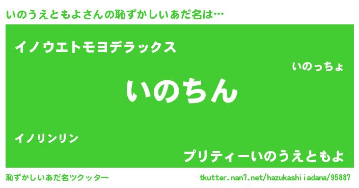| ヘコむあだ名 | 『いのうえともよ(爆)』『いのにー』 |