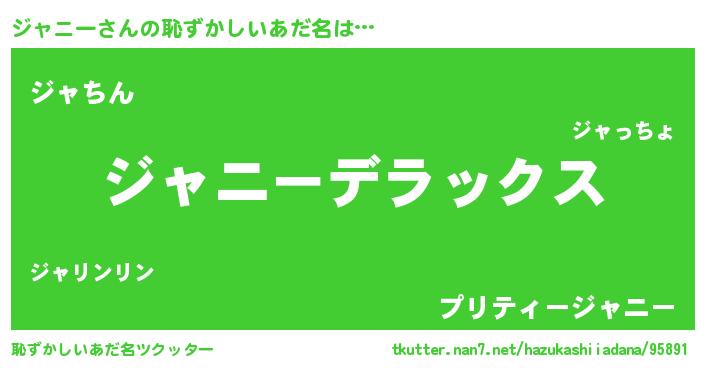 | ヘコむあだ名 | 『ジャニー(苦笑)』『ジャっふぃ~』 |