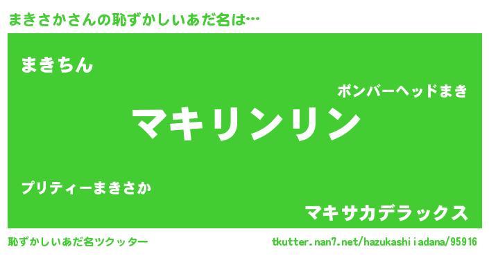 | 男性向けラノベタイトル風あだ名 | 『まきさかに滅ぼされるだけの簡単なお仕事です』 |