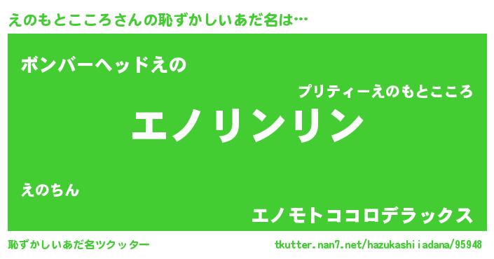 | 意味不明あだ名 | 『とにかく怪しいえのもとこころ』 |