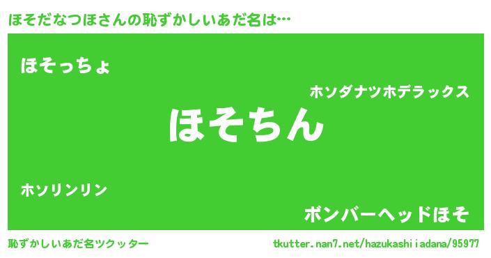 | ヒーロー風カッコイイあだ名 | 『ネオホソダナツホ』『魔戒騎士ホソ』 |