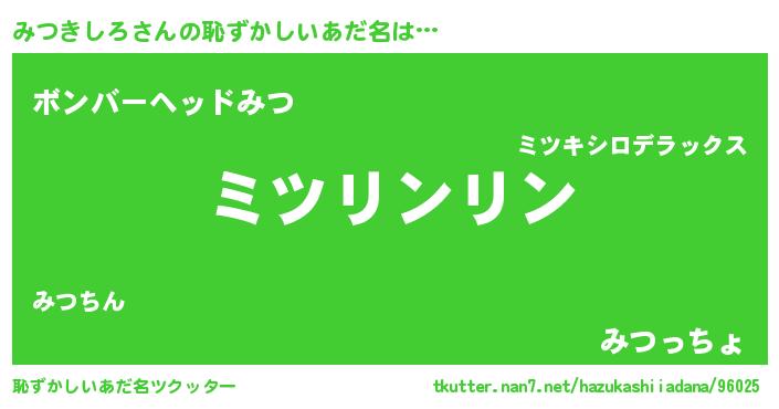 | 男性向けラノベタイトル風あだ名 | 『この素晴らしい世界にみつきしろを!』 |