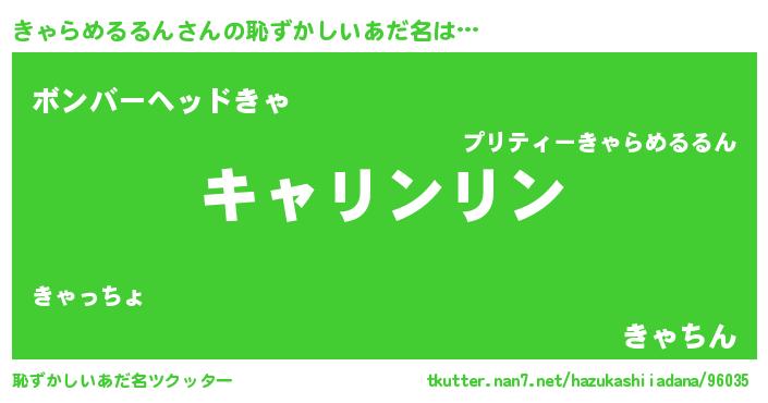 | ヘコむあだ名 | 『きゃを』『きゃらめるるん(笑)』 |