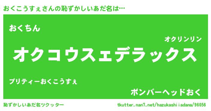 | 男性向けラノベタイトル風あだ名 | 『おくこうすぇに滅ぼされるだけの簡単なお仕事です』 |
