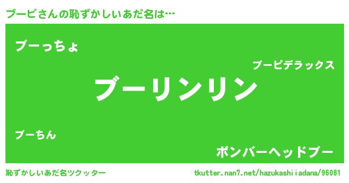 | 意味不明あだ名 | 『とにかく怪しいブーピ』『自称ブーピ』 |