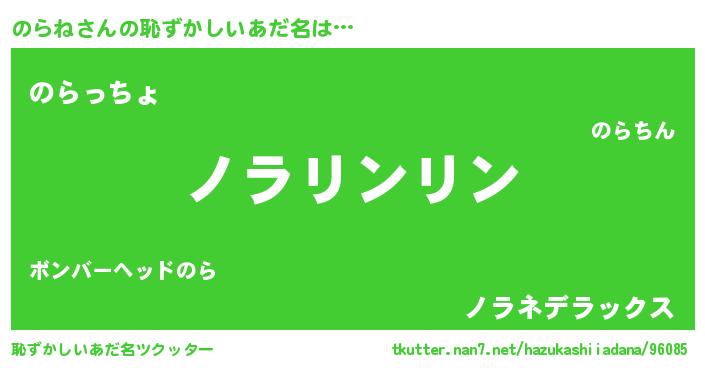 | 意味不明あだ名 | 『とにかく怪しいのらね』『自称のらね』 |