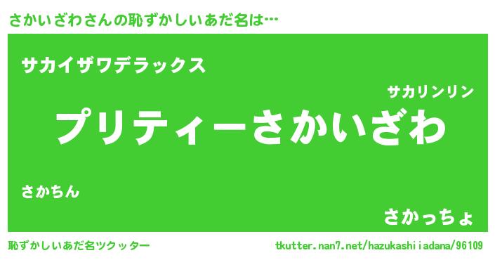 | 意味不明あだ名 | 『ペロリンさかいざわ』『自称さかいざわ』 |