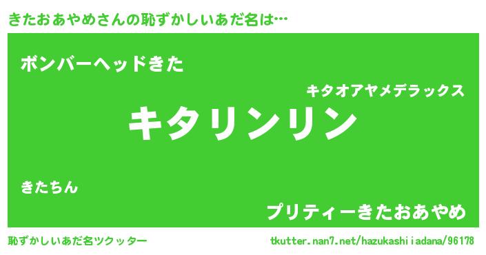 | 欧米人風あだ名 | 『ウサインきたおあやめ』 |