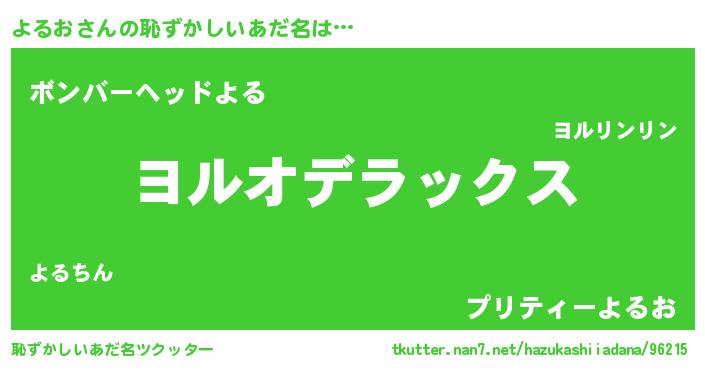 | ヒーロー風カッコイイあだ名 | 『究極戦士ヨルオ』『慈愛の使者よるお』 |