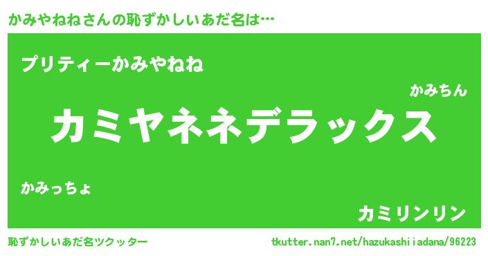 | ヒーロー風カッコイイあだ名 | 『仮面カミダー』『最強戦士カミヤネネ』 |