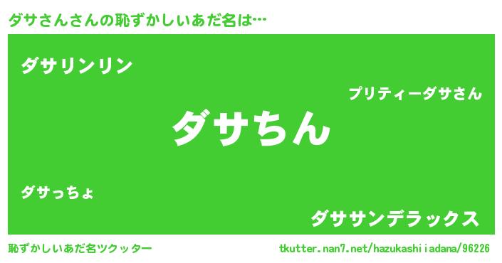 | ヒーロー風カッコイイあだ名 | 『ネオダササン』『黄金騎士ダサ』 |