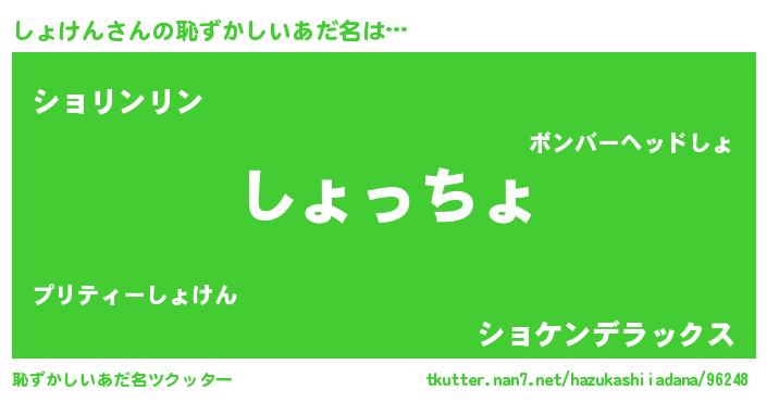 | 意味不明あだ名 | 『しょけんフォーエバー』『自称しょけん』 |