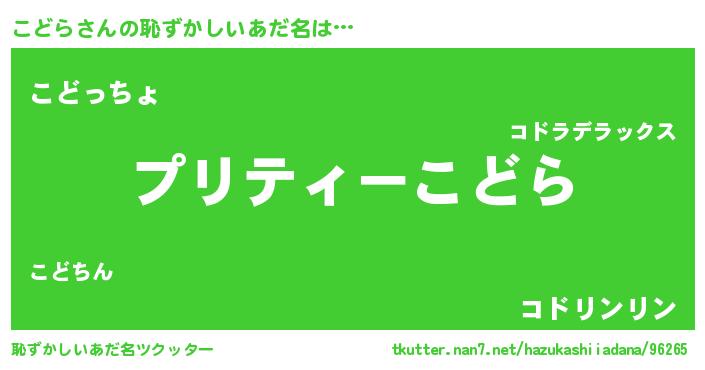 | 男性向けラノベタイトル風あだ名 | 『こどらの憂鬱』『はたらくこどらさま!』 |