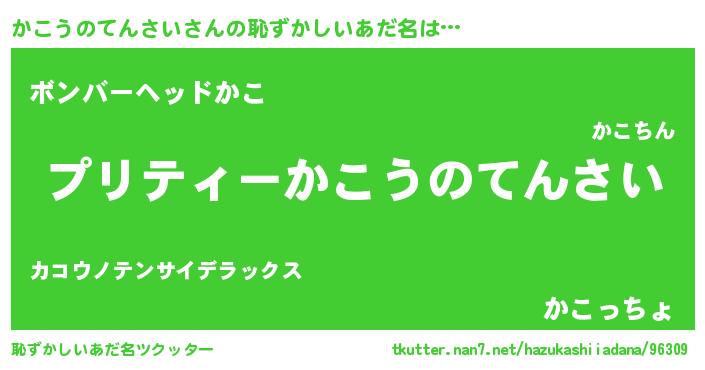 | 女子向けラノベタイトル風あだ名 | 『(仮)かこうのてんさいのやんごとなき事情』 |
