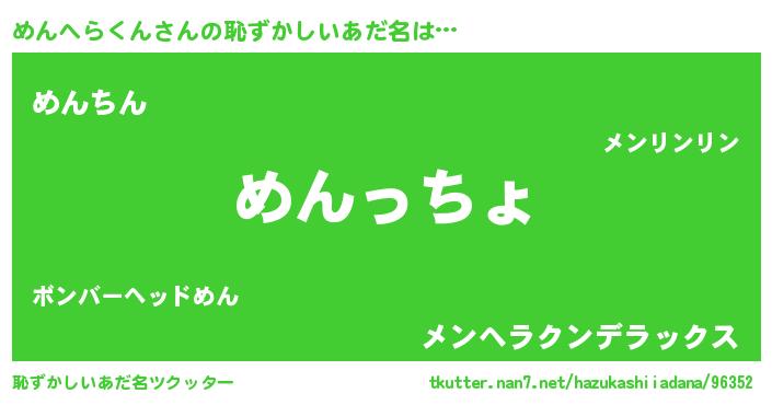 | 男性向けラノベタイトル風あだ名 | 『やはりめんへらくんの青春ラブコメはまちがっている 』 |