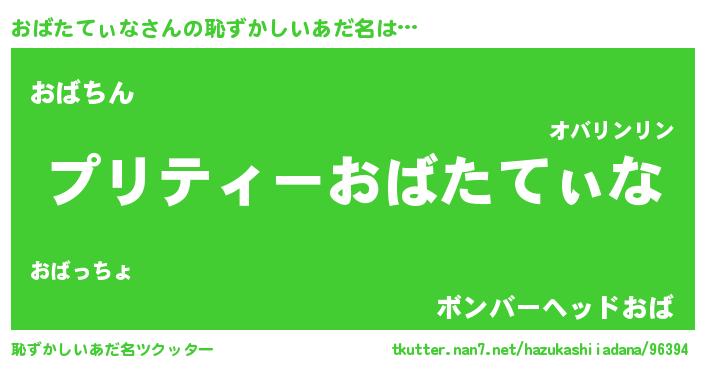 | 男性向けラノベタイトル風あだ名 | 『転生したらおばたてぃなだった件』 |