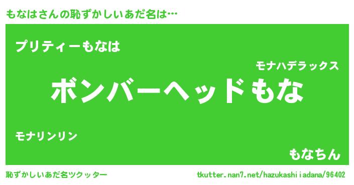 | ヒーロー風カッコイイあだ名 | 『天空の使者もなは』『スーパーモナハ』 |