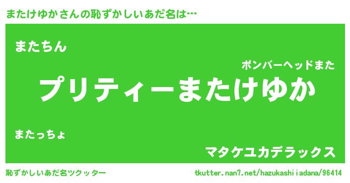 | ヒーロー風カッコイイあだ名 | 『スーパーマタケユカ』『仮面マタダー』 |