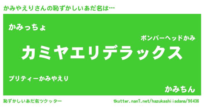 | 意味不明あだ名 | 『自称かみやえり』『永久保存かみやえり』 |