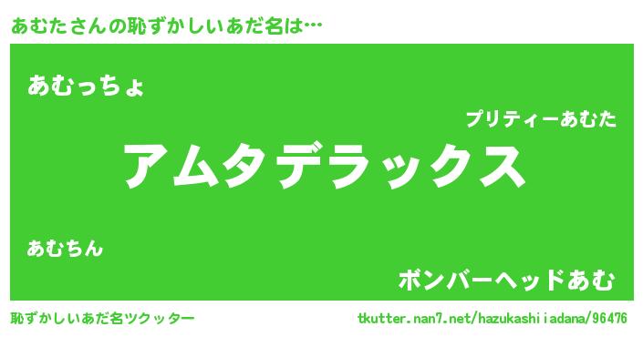 | ヒーロー風カッコイイあだ名 | 『サイバー戦士アムタ』『愛の使者あむた』 |