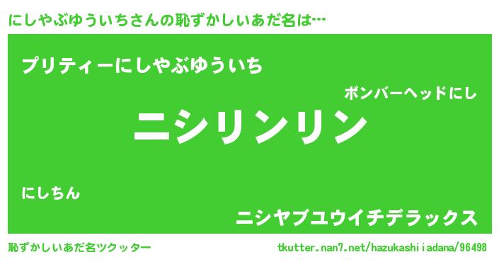 | ポケモン風あだ名 | 『ヒニシヤブユウイチ』『ニシチュウ』 |