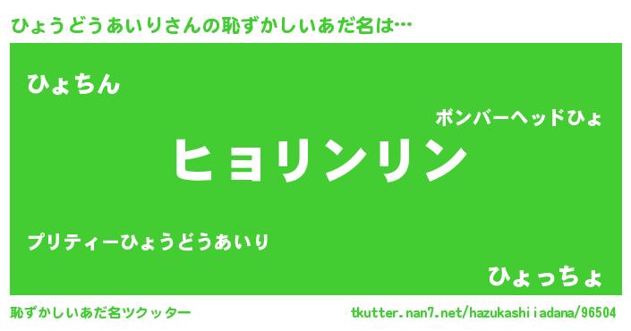 | 男性向けラノベタイトル風あだ名 | 『ひょうどうあいりに滅ぼされるだけの簡単なお仕事です』 |