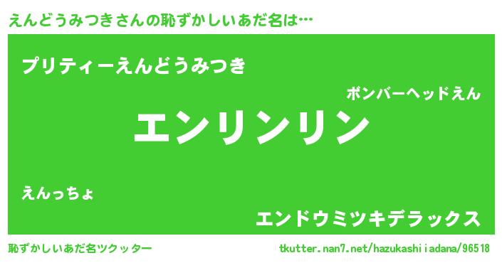 | 意味不明あだ名 | 『住所不定無職えんどうみつき(74歳)』 |