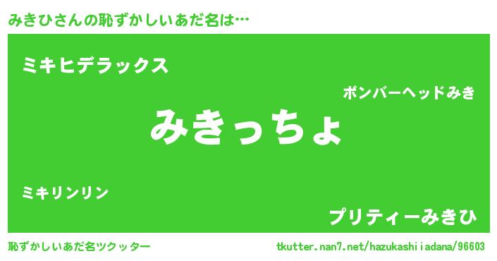 | 意味不明あだ名 | 『みきひフォーエバー』『自称みきひ』 |