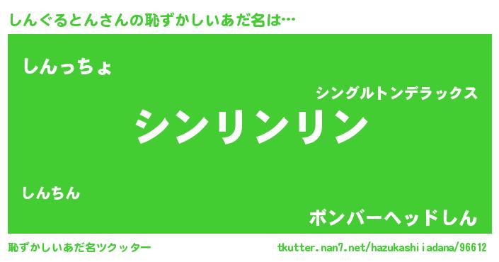 | 意味不明あだ名 | 『とにかく怪しいしんぐるとん』 |