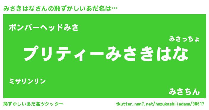 | ヒーロー風カッコイイあだ名 | 『スーパーミサキハナ』『仮面ミサダー』 |