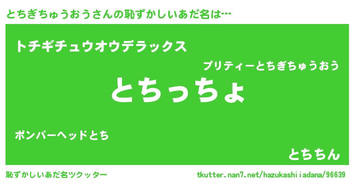 | 意味不明あだ名 | 『住所不定無職とちぎちゅうおう(8歳)』 |
