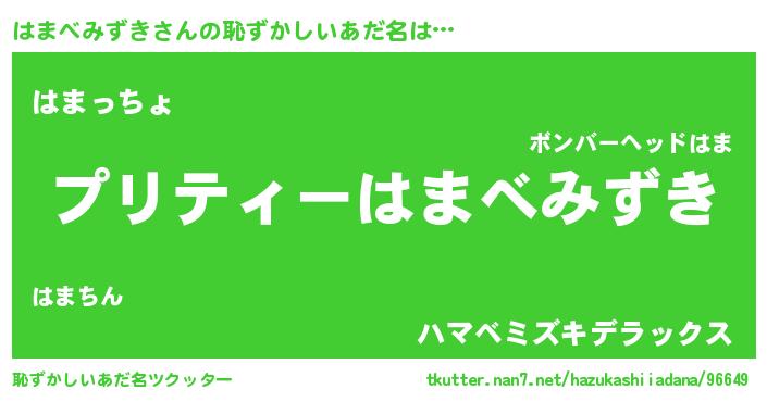 | ヒーロー風カッコイイあだ名 | 『スーパーハマベミズキ』『仮面ハマダー』 |