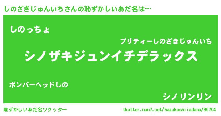| 女子向けラノベタイトル風あだ名 | 『シンデレラしのざきじゅんいち家の靴箱館』 |