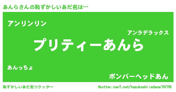 | 欧米人風あだ名 | 『アンジェラ・あんら』『マイケルあんら』 |
