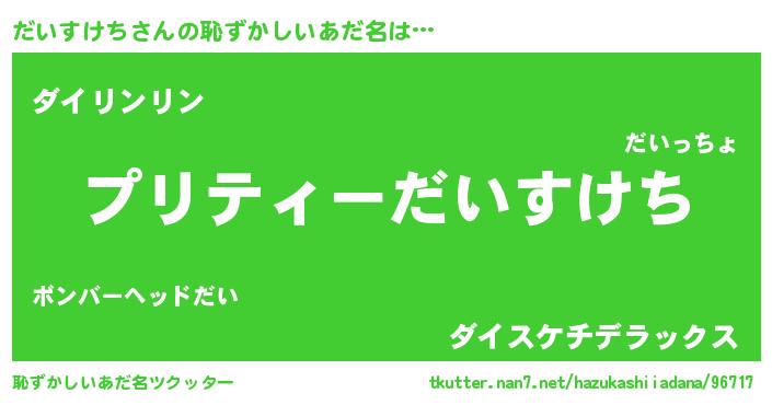 | ヘコむあだ名 | 『だいにゅー』『だいを』『なまこ酢』 |