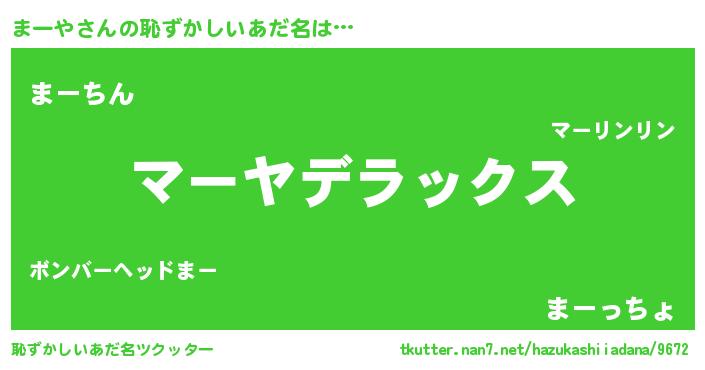 | ヘコむあだ名 | 『まーや(震え声)』『豆乳』『まーを』 |