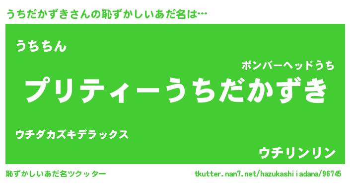 | ヒーロー風カッコイイあだ名 | 『スーパーウチダカズキ』『銀牙騎士ウチ』 |